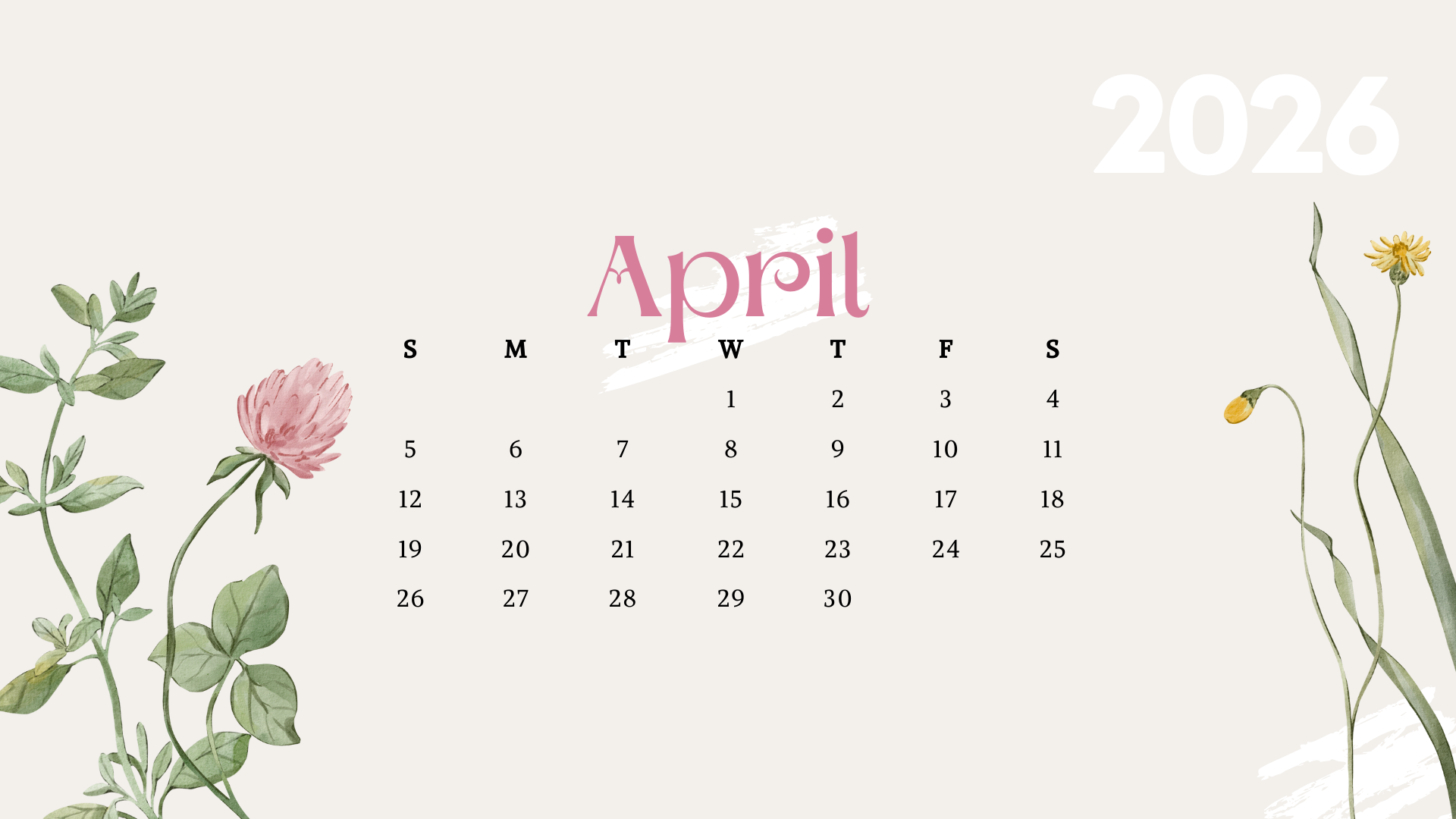 All of these April 2026 Desktop Calendar Backgrounds are completely free and created for easy downloading. Simply scroll, choose your favorite design, and save it straight to your computer in seconds. Whether you prefer minimal, floral, neutral, or seasonal styles, there's something here to help you welcome April feeling organized, refreshed, and ready for the month ahead.