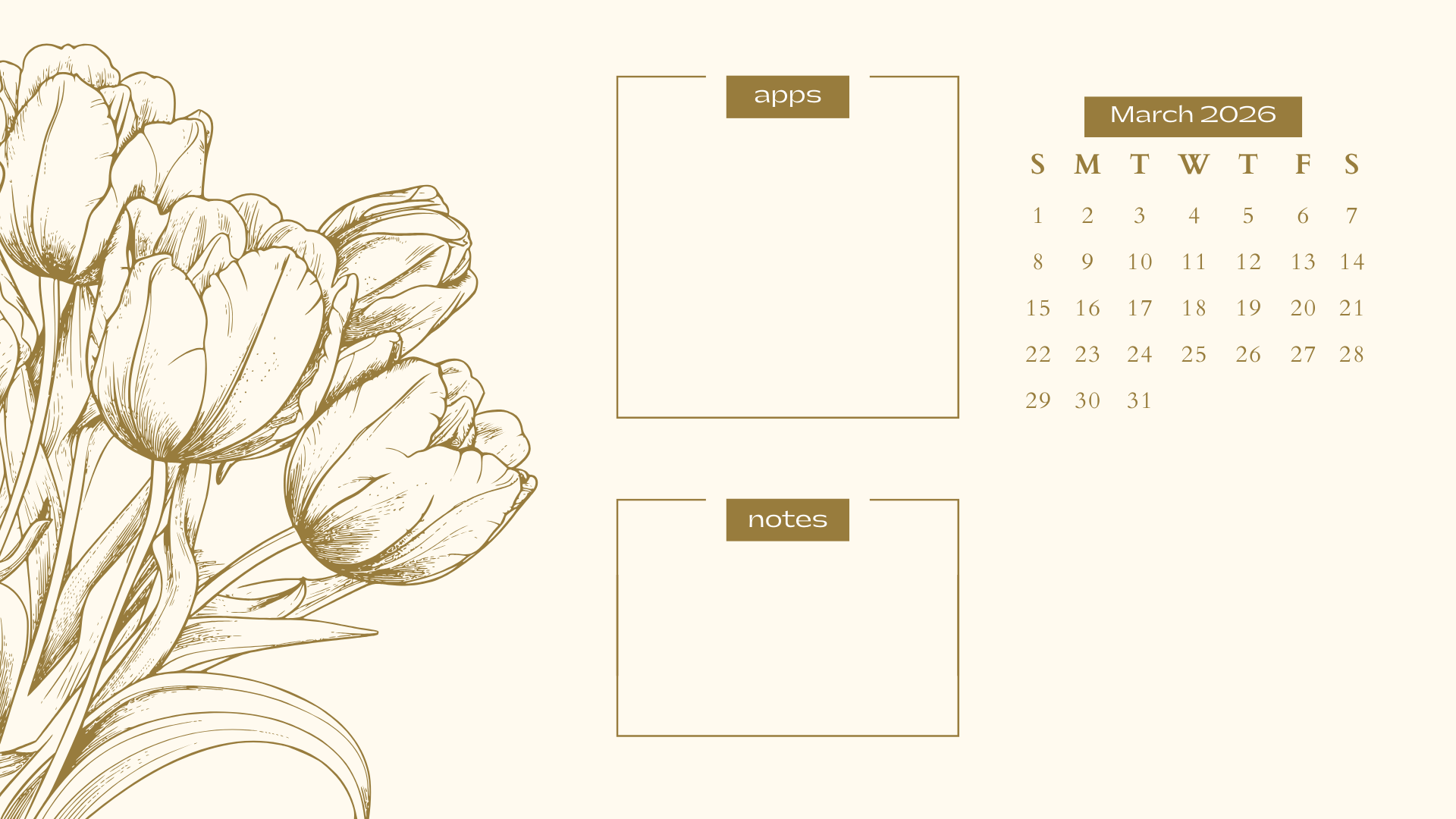 These free March 2026 desktop calendar backgrounds are designed to keep your screen both beautiful and functional. Each wallpaper features a clean, easy-to-read calendar paired with soft, seasonal designs - perfect for staying organized all month long.