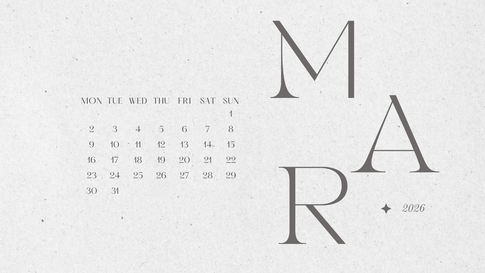 I hope these free March 2026 desktop calendar backgrounds bring a little extra calm and inspiration to your daily routine. Something as simple as refreshing your screen can make staying organized feel lighter and more intentional - especially as we head into a new season. Whether you choose one design or rotate through a few, I hope they help you start each day feeling focused and refreshed.