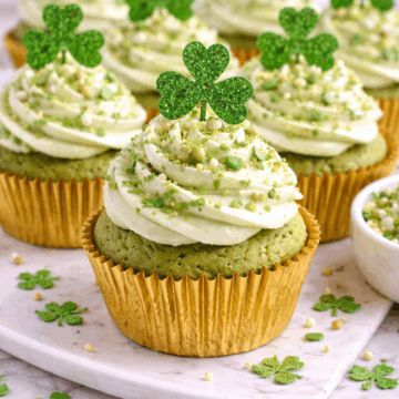 These Healthy St Patrick's Day Matcha Cupcakes are naturally green, lightly sweet, and topped with creamy frosting for a festive better-for-you dessert everyone will love.