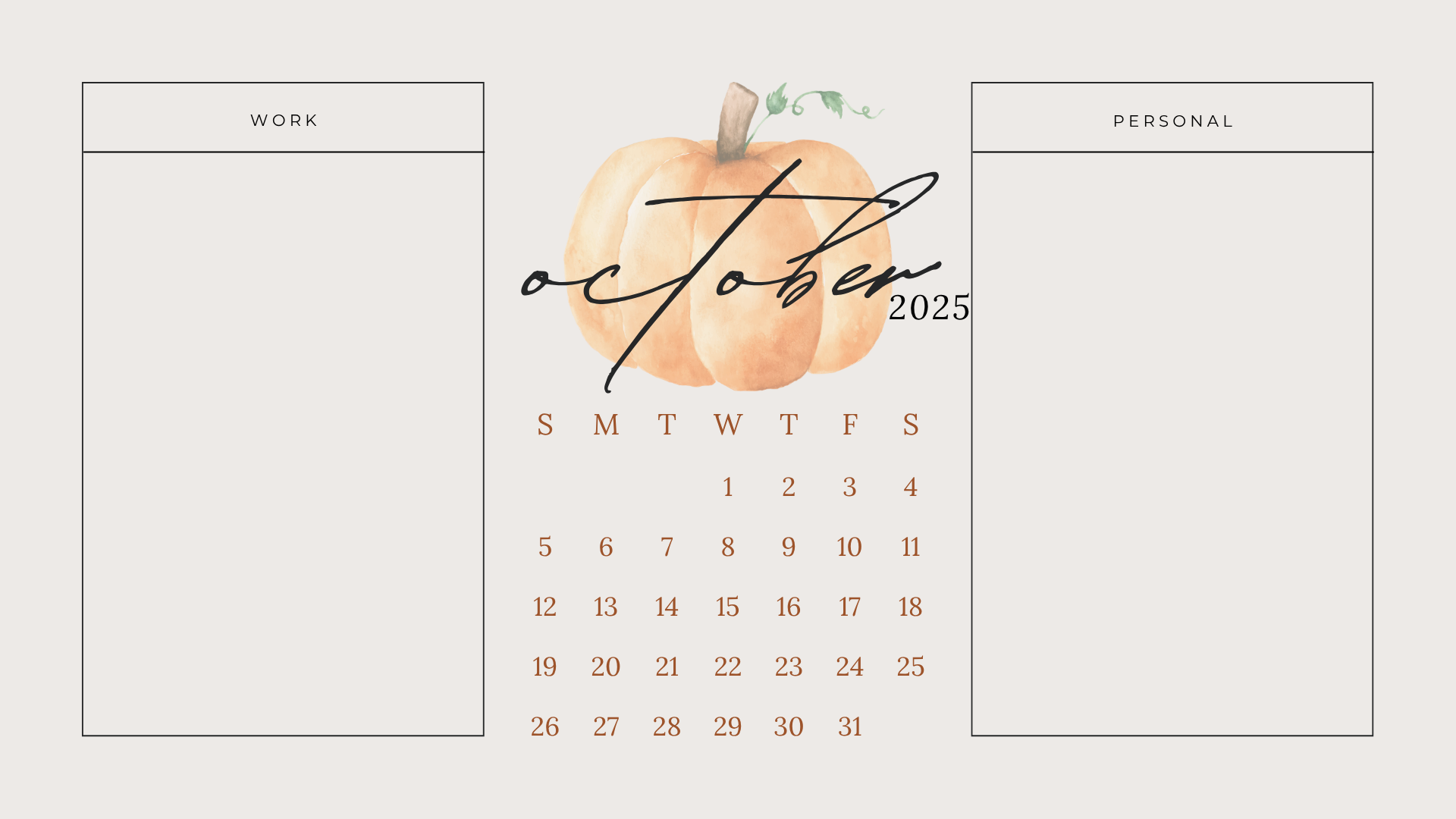 Whether you swap them out weekly or stick to one all month, these wallpapers are an easy way to refresh your digital space without any extra effort. Simply download, set, and enjoy the seasonal mood boost every time you open your computer. Here's to a productive, festive, and beautifully organized October!