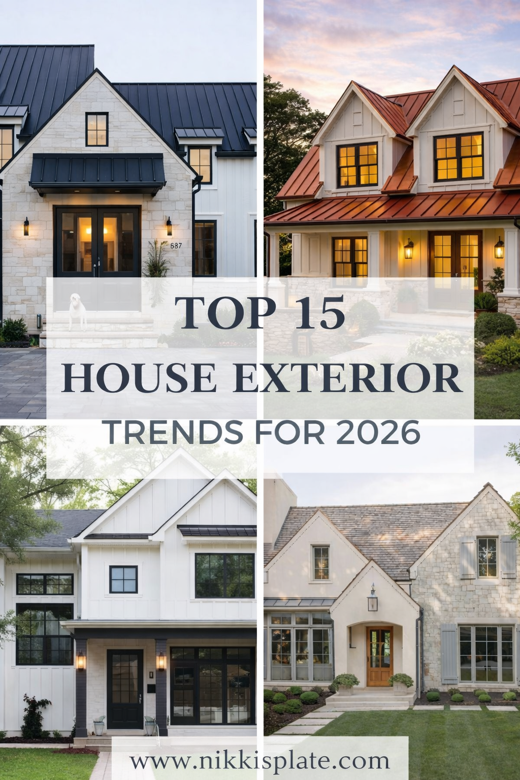 Discover the top house exterior trends for 2026, including warm color palettes, natural materials, modern farmhouse details, and timeless curb appeal ideas.